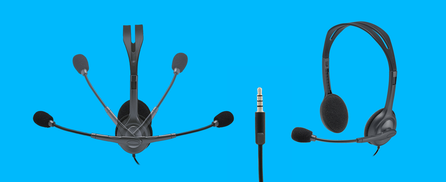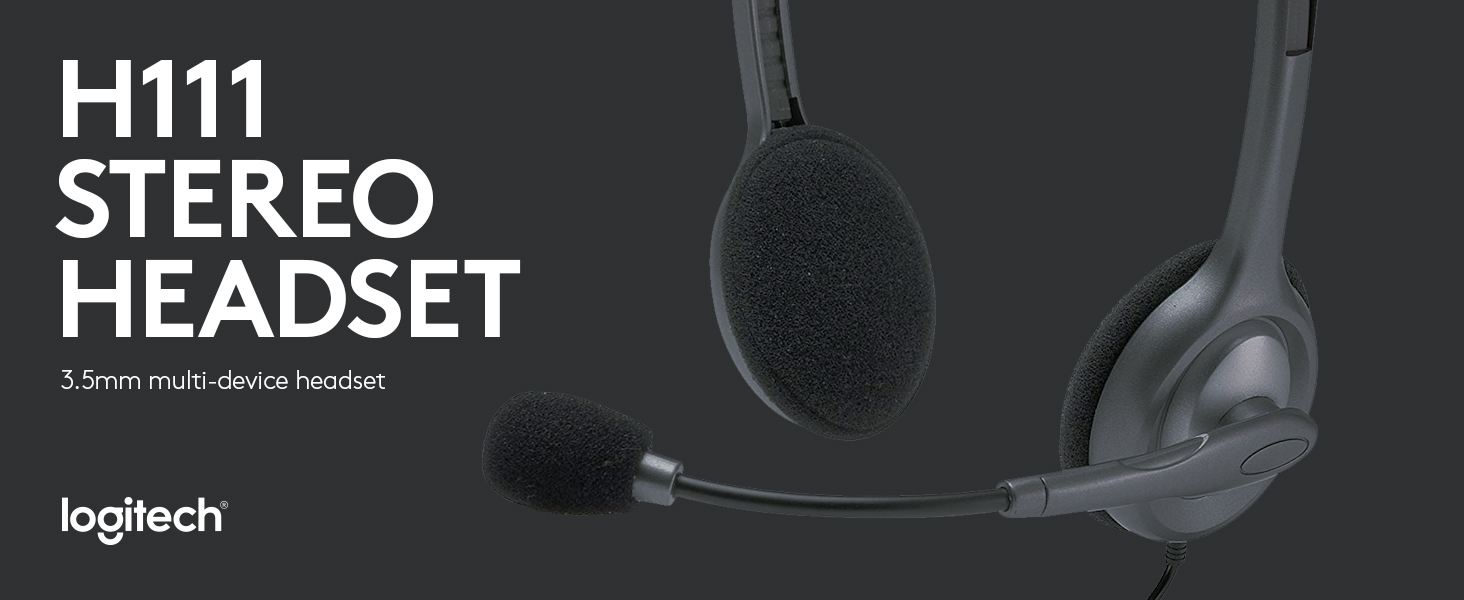Logitech H111 Wired Headset, Stereo Headphones with Noise-Cancelling Microphone, 3.5 mm Audio Jack, PC/Mac/Laptop/Smartphone/Tablet – Black